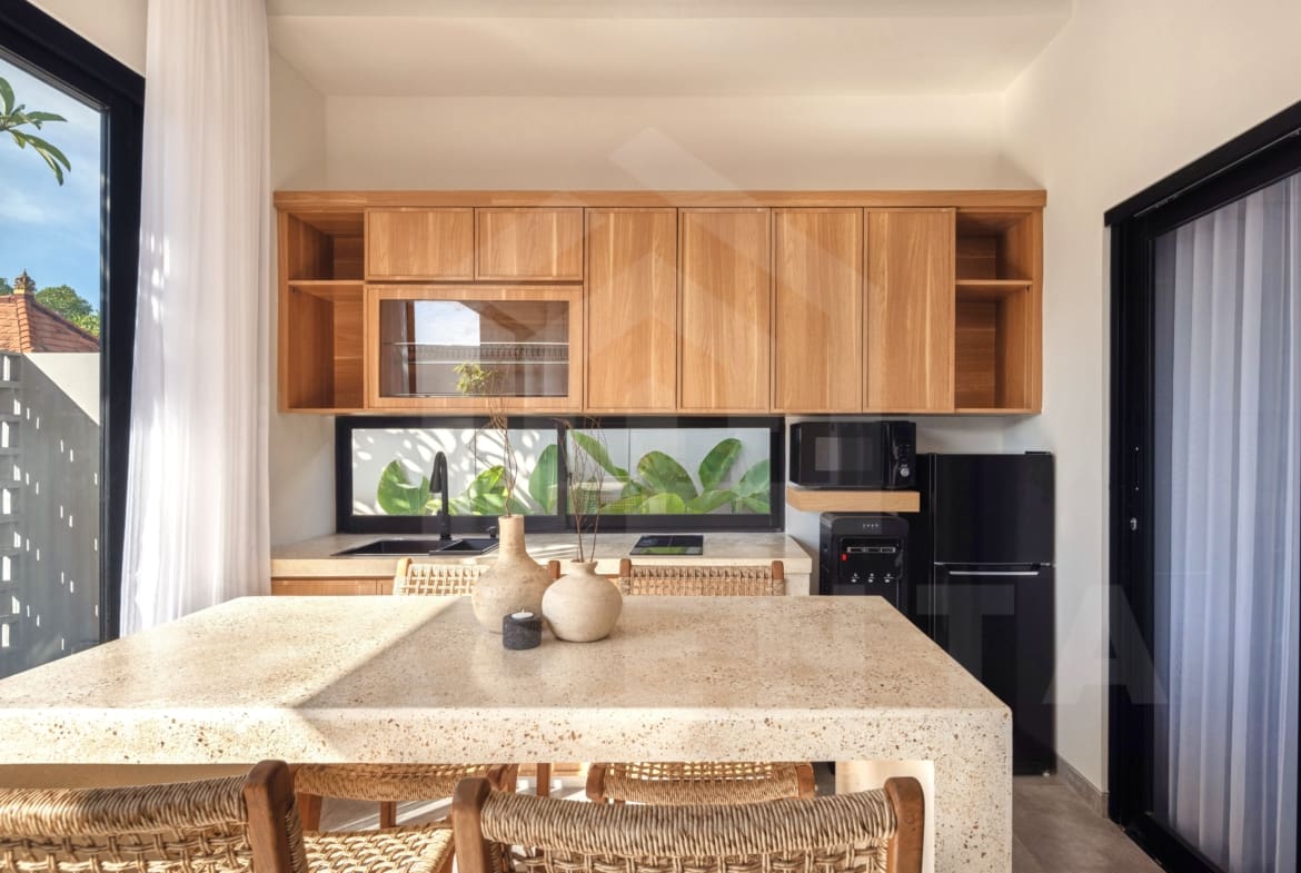 Experience the tranquil Japanese vibe inside a gated community with this property. As a part of villa cluster, each unit comes with private parking space that accommodates a car or a couple of bikes. Thanks to its secluded location, the property enjoys peaceful environment close to lush mangrove forest. Nonetheless, the pristine Jimbaran beach and delicious seafood restaurants are less than 2 kilometers away, while the airport can be reached with 25 minute drive.
